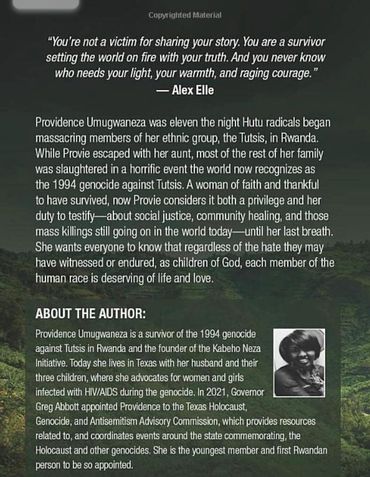 She was 11. Next Couple Hours: A Story of Fear, Loss, Courage, and Determination During and After the Genocide Against Tutsis in Rwanda tells her story. More than a million innocent lives were claimed during this conflict, and as a survivor, Providence considers it her responsibility to bear witness to the atrocities of genocide. She wants to save the next generation from falling into the same trap of experiencing such sinister events, since nobody is immune to genocide.